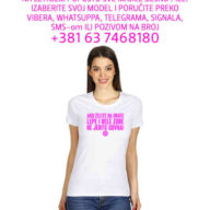Dovoljno je da pozovete broj 063 7468180 i poručite majicu koja vam stiže u najkraćem mogućem roku. Odlična stvar da iznenadite nekoga veoma prijatno ili