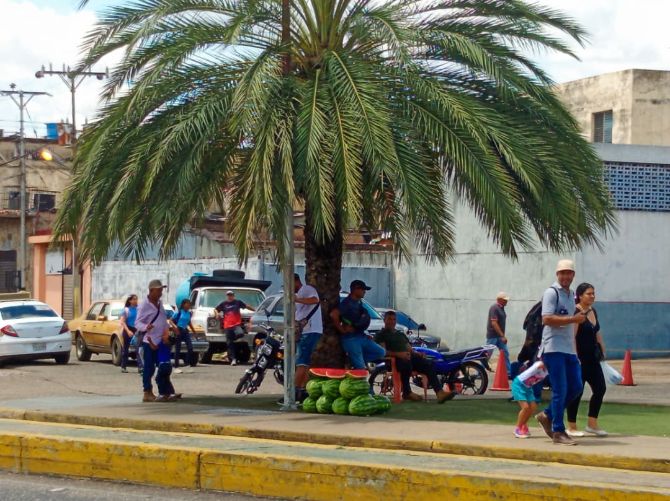 Las altas temperaturas que afectan al país por la declinación solar obligan a vendedores ambulantes a reducir sus jornadas laborales, en El Tigre, estado