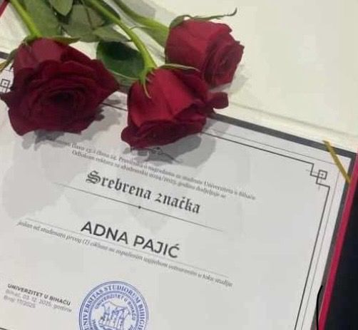 Adna Pajić iz Cazina ostvarila je izuzetan akademski uspjeh i postala dobitnica Srebrene značke Univerziteta u Bihaću, jednog od najviših priznanja koje