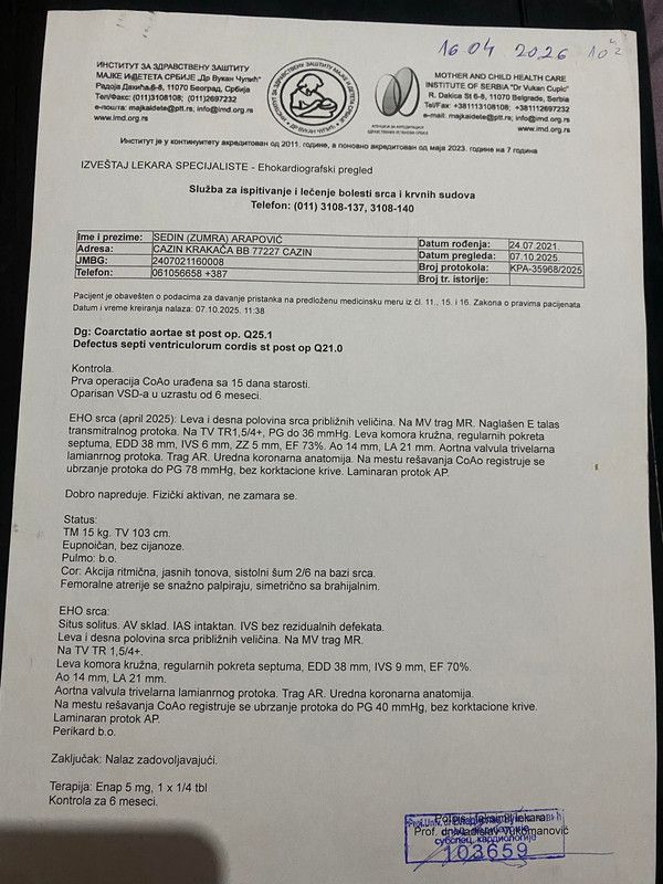 Mali Sedin Arapović iz Cazina, dječak koji se od samog rođenja bori s teškim i rijetkim srčanim manama, ponovo treba pomoć dobrih ljudi kako bi nastavio