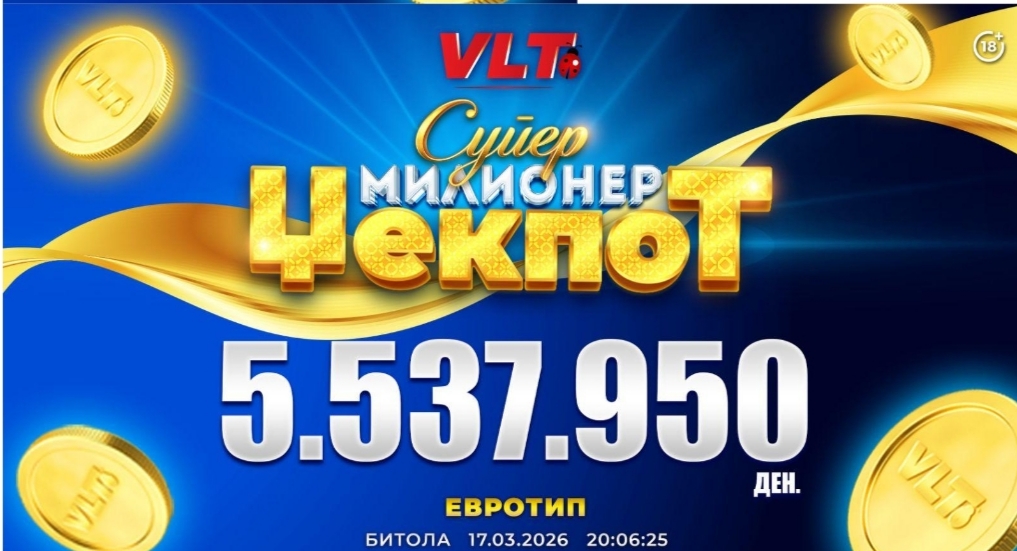 Bitolčanecot N.S. osvoi SUPER MILIONER DžEKPOTOT, vreden 5.537.950 denari. Naјposakuvanata VLT dobivka e osvoena so igrata „20 Super hot“, na videolotariskite