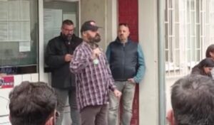 Profesor Dušan Bojanić stoji u centru Zrenjanina po kiši u znak podrške Dijani Hrki koja u Beogradu štrajkuje glađu jer nije utvrđeno ko je odgovoran za