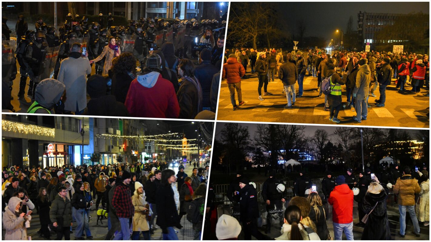 Večeras su se Beograđani okupili ispred Narodne skupštine povodom policijske brutalnosti na Filozofskom fakultetu u Novom Sadu. Tom prilikom, među čuvarima