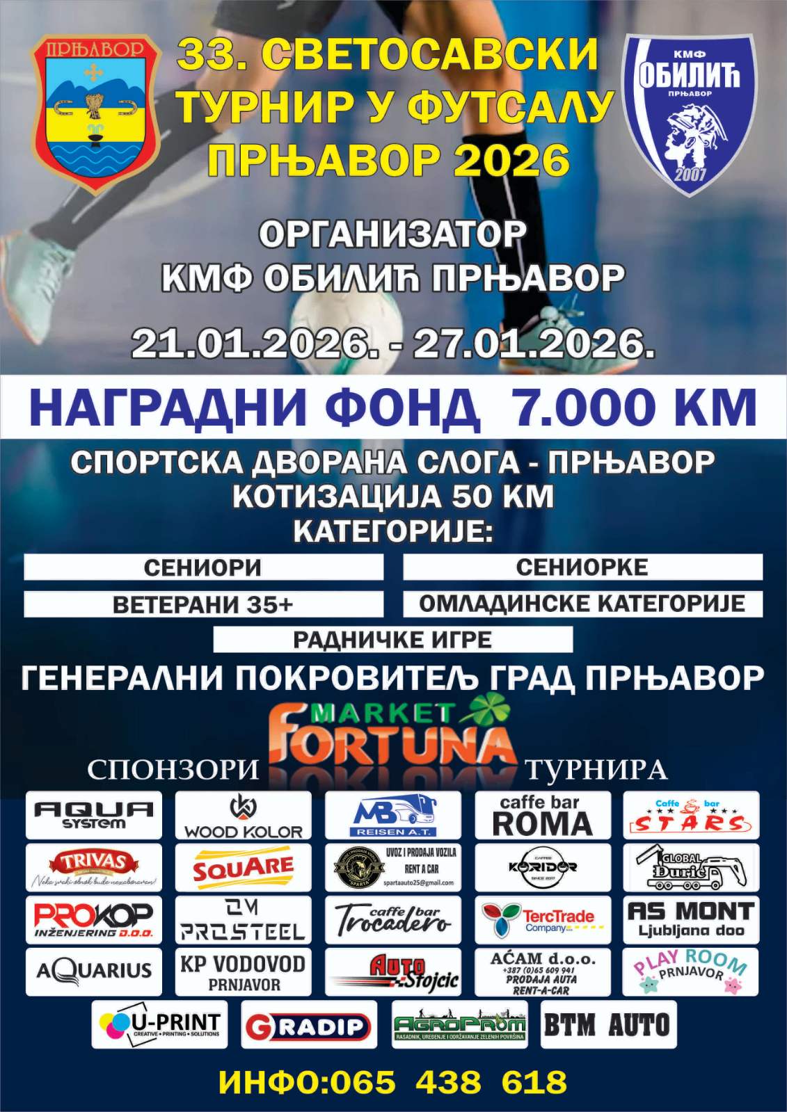 Prnjavor je večeras domaćin početka Svetosavskog futsal turnira 2026, jedne od najznačajnijih sportskih manifestacija u ovom dijelu Republike Srpske. Nakon