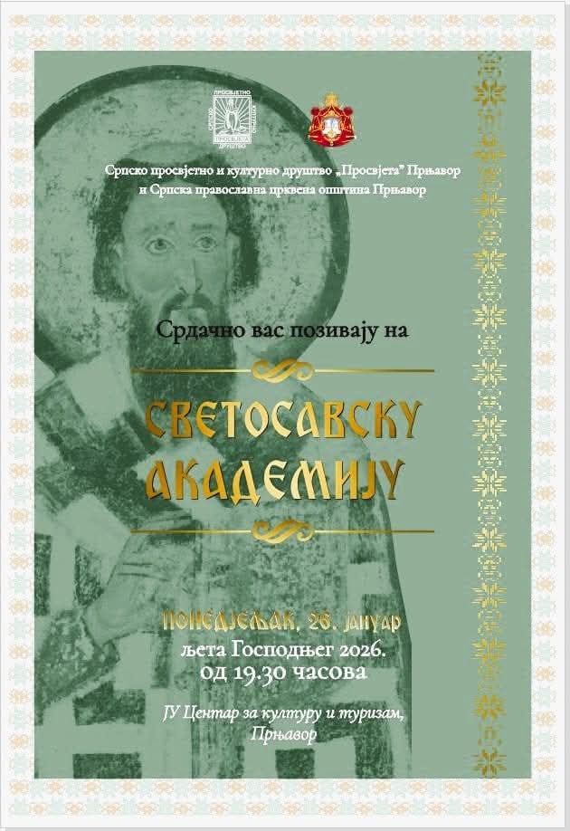 Светосавска академија 26.01. (понедјељак) у Прњавору