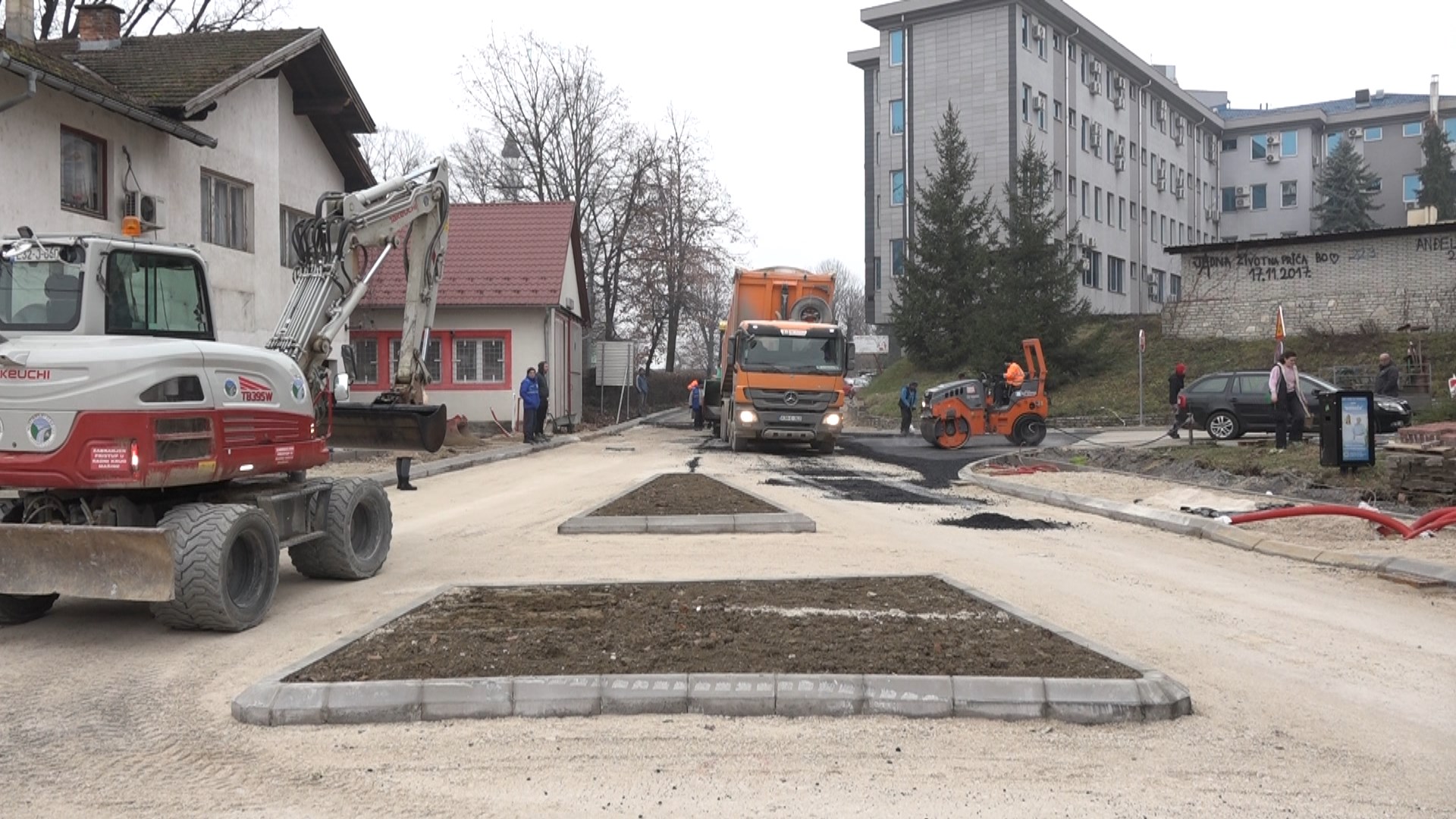 Novi kružni tok kod prnjavorske Zelene pijace dobio je prvi sloj asfalta. Iako je zimsko vrijeme, pa nije uobičajeno da se radovi na asfaltiranju izvode