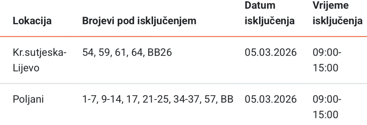 Služba za odnose sa javnošću i informisanje kupaca Podružnice “Elektrodistribucija” Zenica, obavještava kupce da će u četvrtak 05.03.2026. godine, zbog
