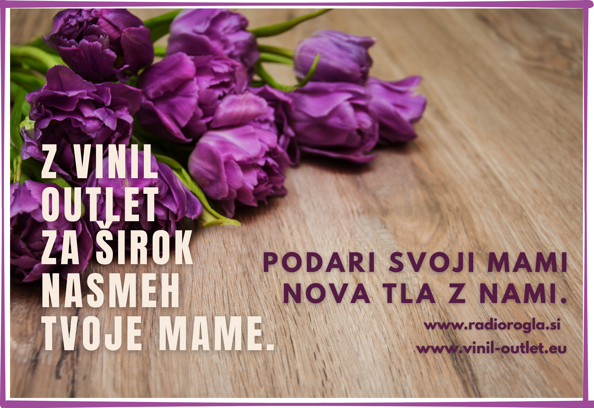 Podari svoji mami nova tla z nami. Razveseli svojo mamo in ji podari nova tla. Z Vinil Outlet podarimo 50 kvadratnih metrov tal za tvojo mamo. Za dober