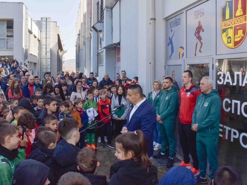 Почетният гражданин на Етрополе Христо Стоичков, кметът на община Етрополе инж. Владимир Александров и капитанът на мъжкия отбор по волейбол Ваньо Василев