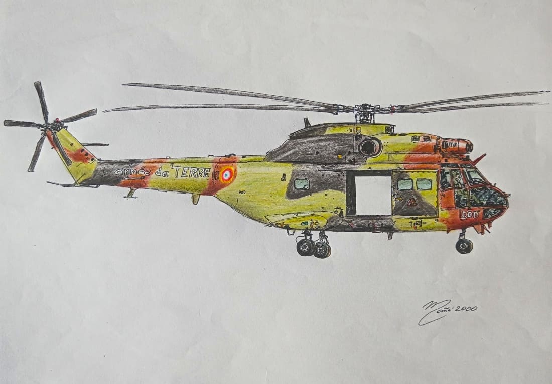 Aérospatiale SA 330 Puma. Drawing by Joan Mañé