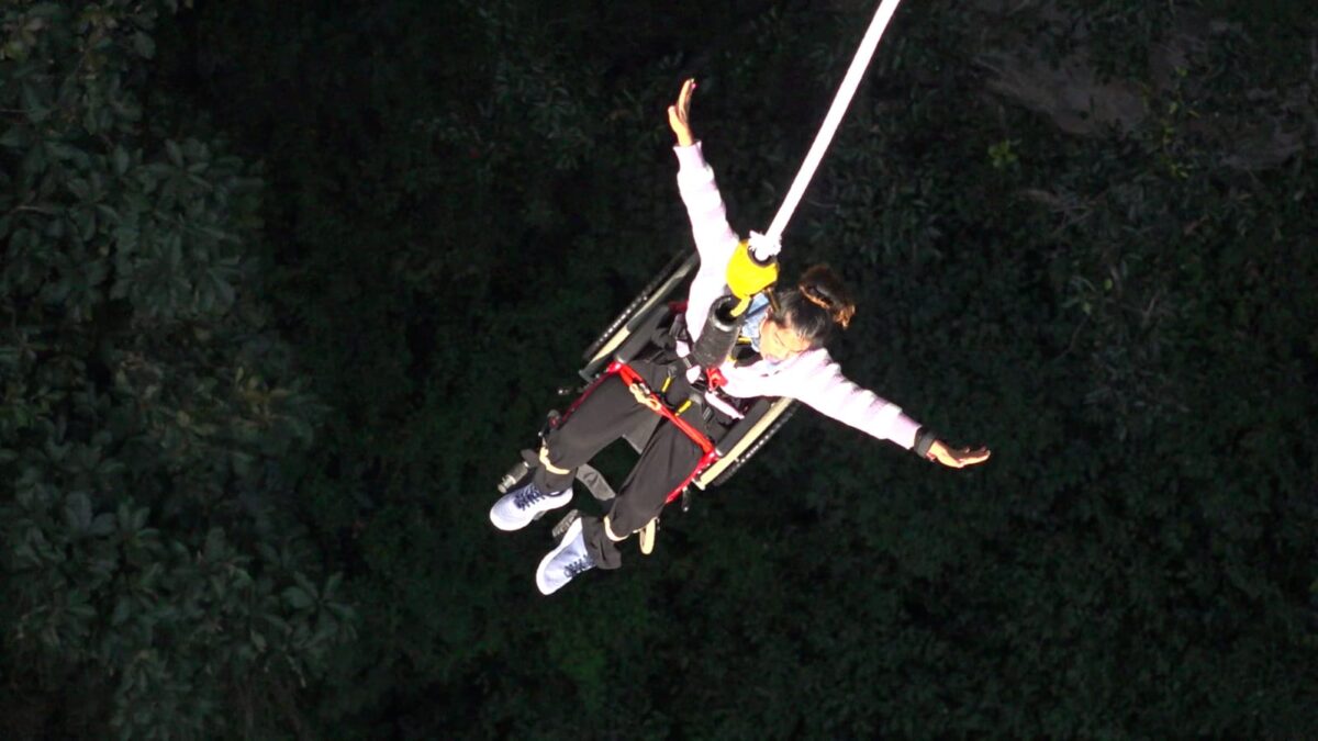 Deepa Devkota from Sindhuli District has become the first Nepali woman living with a disability to complete a wheelchair bungee jump at the Bhotekoshi