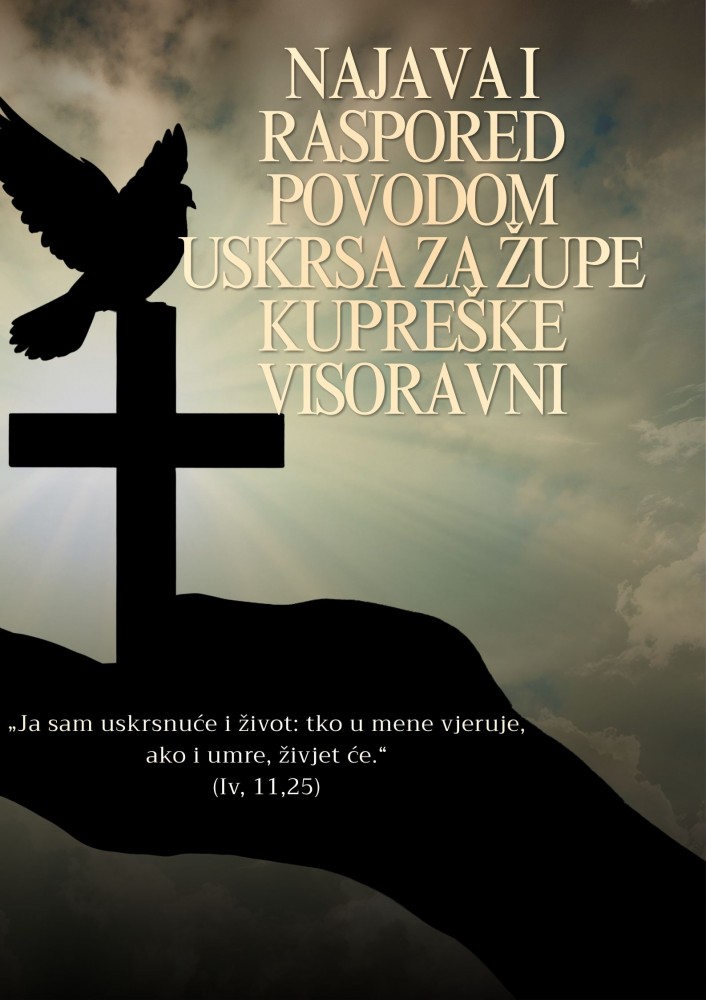 Velika uskršnja ispovijed u župama na Kupresu je u ponedjeljak 23.3.2026. po sljedećem rasporedu:Župa UBDM Suho polje - 10 sati i 14 i 30 satiŽupa svete
