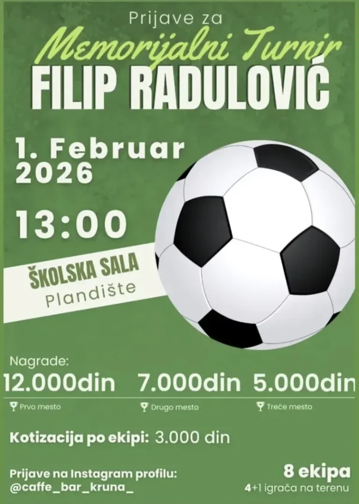 Sportsko udruženje sa teritorije Opštine Plandište, i ove godine organizuje peti po redu memorijalni turnir u malom fudbalu „Filip Radulović“, u znak sećanja