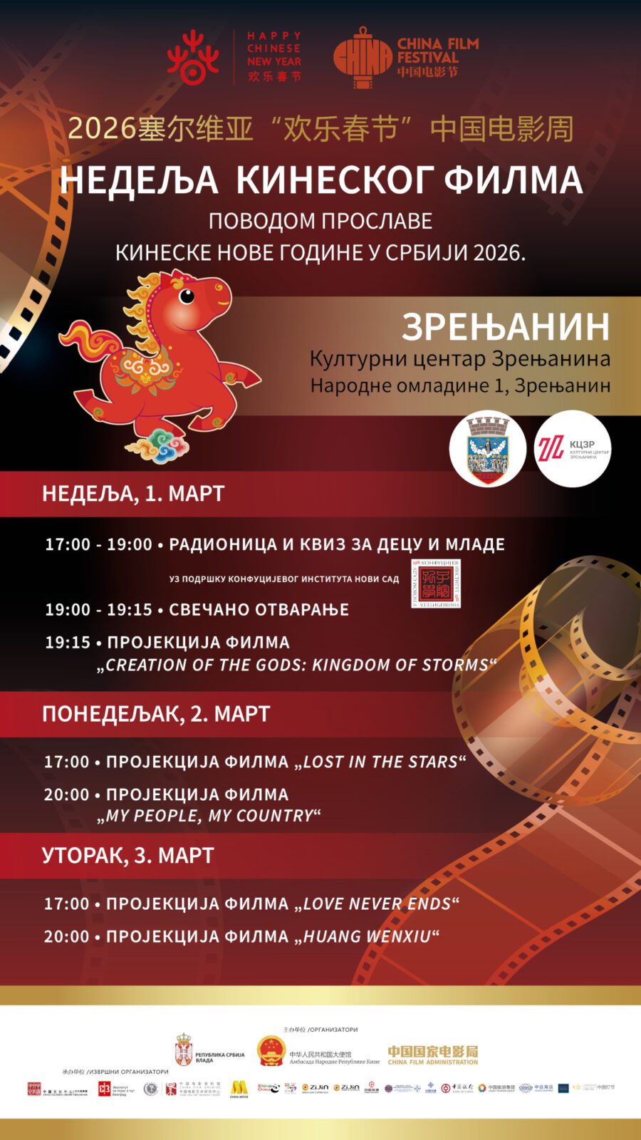 Obeležavanje kineske Nove godine u Srbiji pod nazivom „Srećna kineska Nova godina“ ulazi u završnicu filmskim festivalom. Održaće se u
