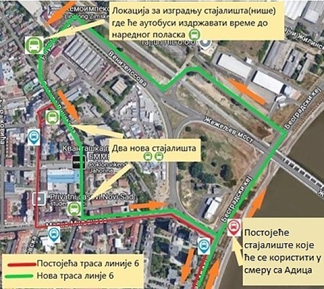 Trasa autobusa GSP-a na liniji 6 (Podbara - centar - Adice) trajno će biti izmenjena od subote, 29. novembra zbog izgradnje nove okretnice „Filipa Višnjića