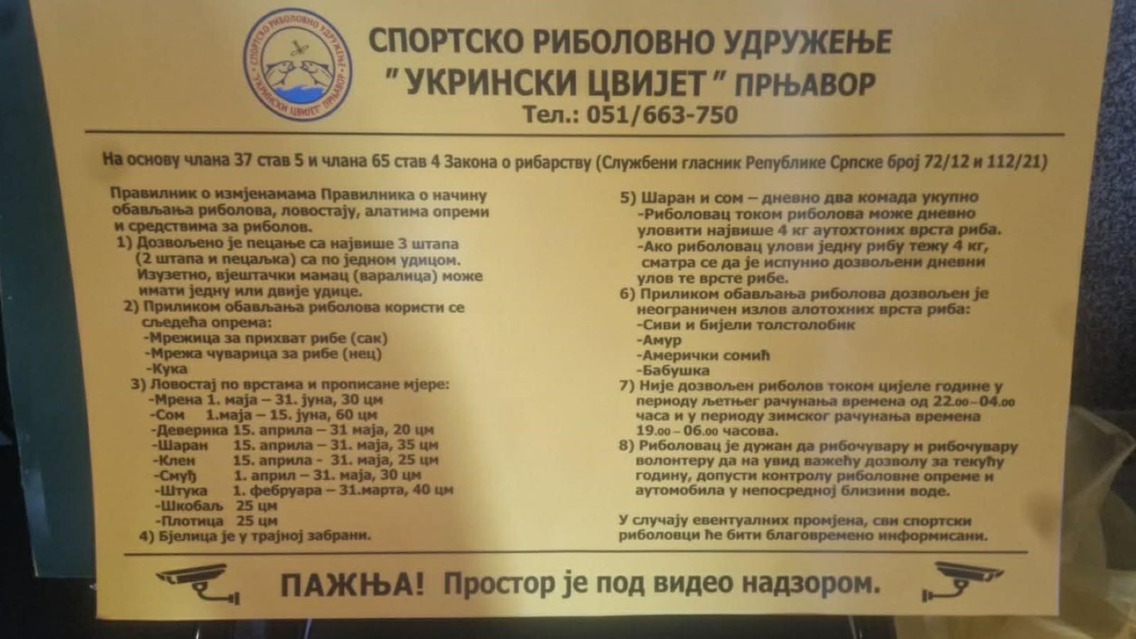 Sportsko-ribolovno udruženje „Ukrinski cvijet“ iz Prnjavora uputilo je apel svim ribolovcima da odgovornim ponašanjem doprinesu očuvanju ribljeg fonda