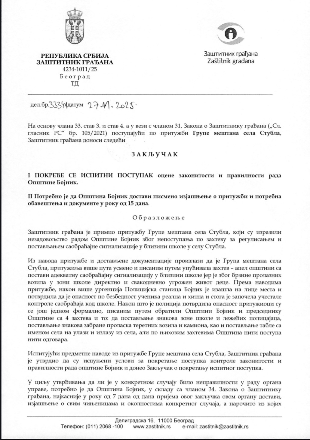Kako je Rešetka pisala u nekoliko navrata, apeli žitelja bojničkog sela Stubla da izdejstvuju bar jedan saobraćajni znak ili usporivač saobraćaja, makar