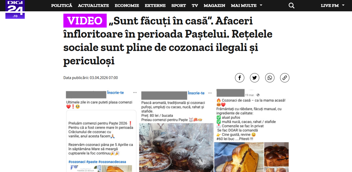 Statul le-a pus gând rău gospodinelor care prepară cozonaci și îi vând cunoscuților. Autoritățile anunță că astfel de „afaceri“ sunt complet ilegale și