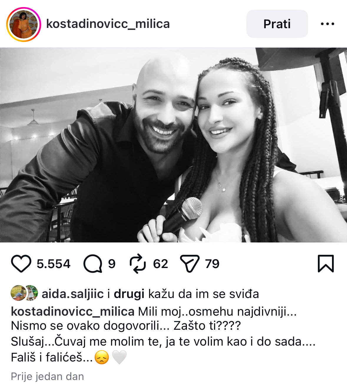 Pjevačica iz „Zvezda Granda“, Milica Kostadinović, oprostila se od Dragana Lazića koji je jučer, 11. marta, stradao u saobraćajnoj nesreći. Milica je na