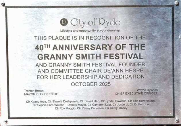 Congratulations to De’ann Hespe who has been honoured by Ryde Council with a plaque unveiled last Wednesday morning in Eastwood Plaza acknowledging her